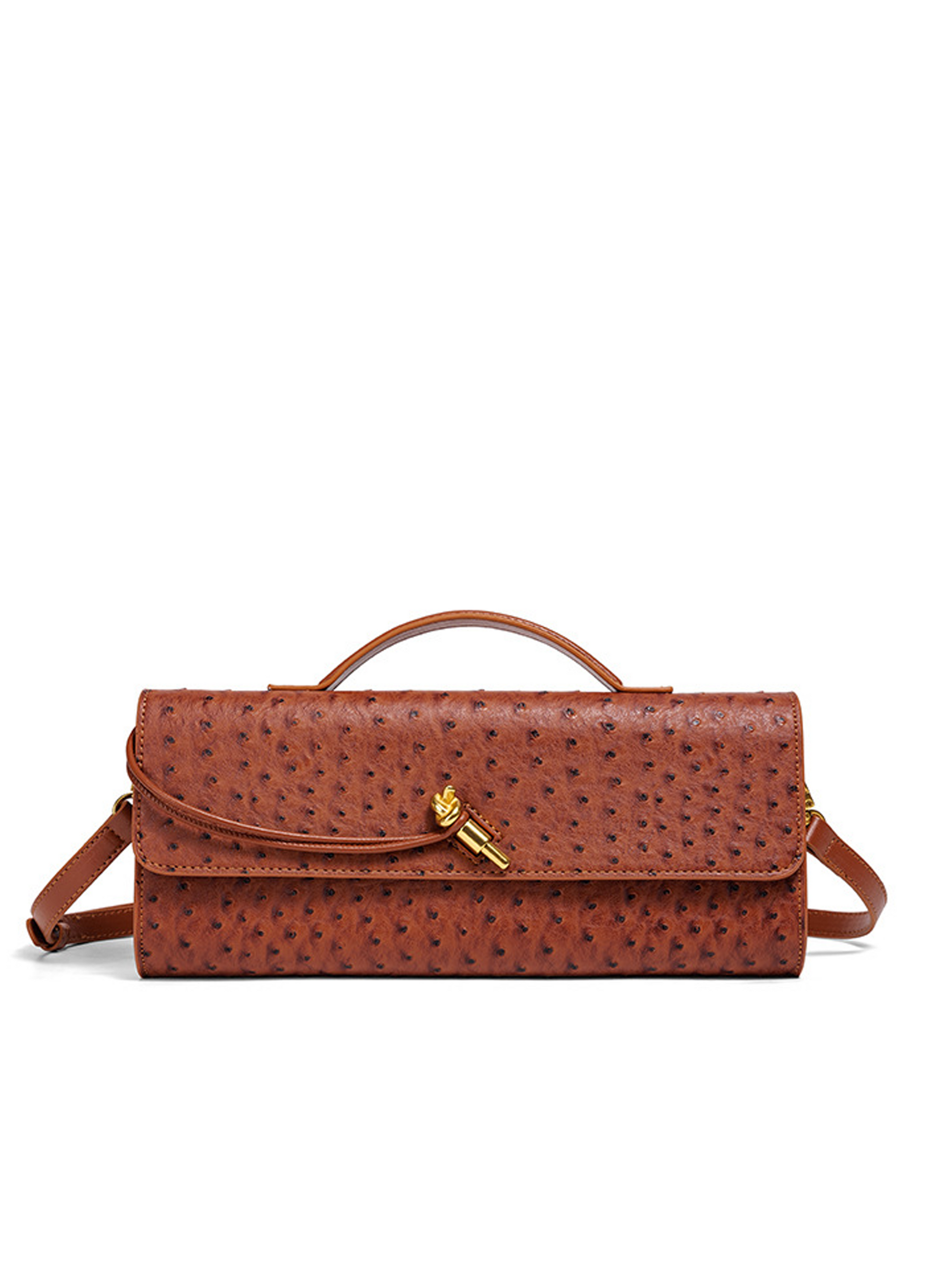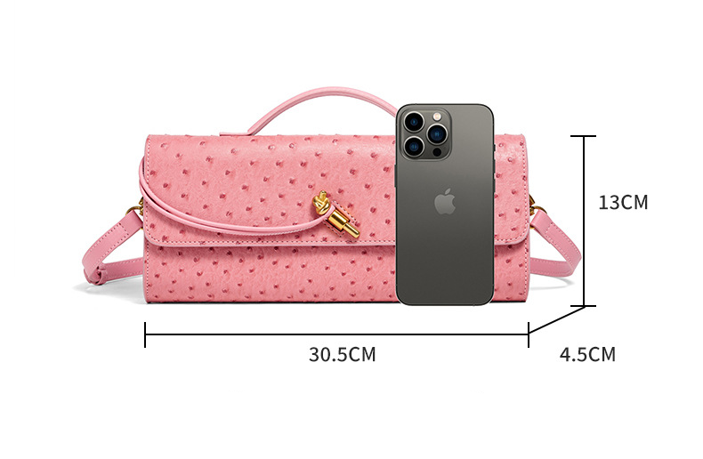 Ostrich-texture embossing that enhances depth and visual luxury
