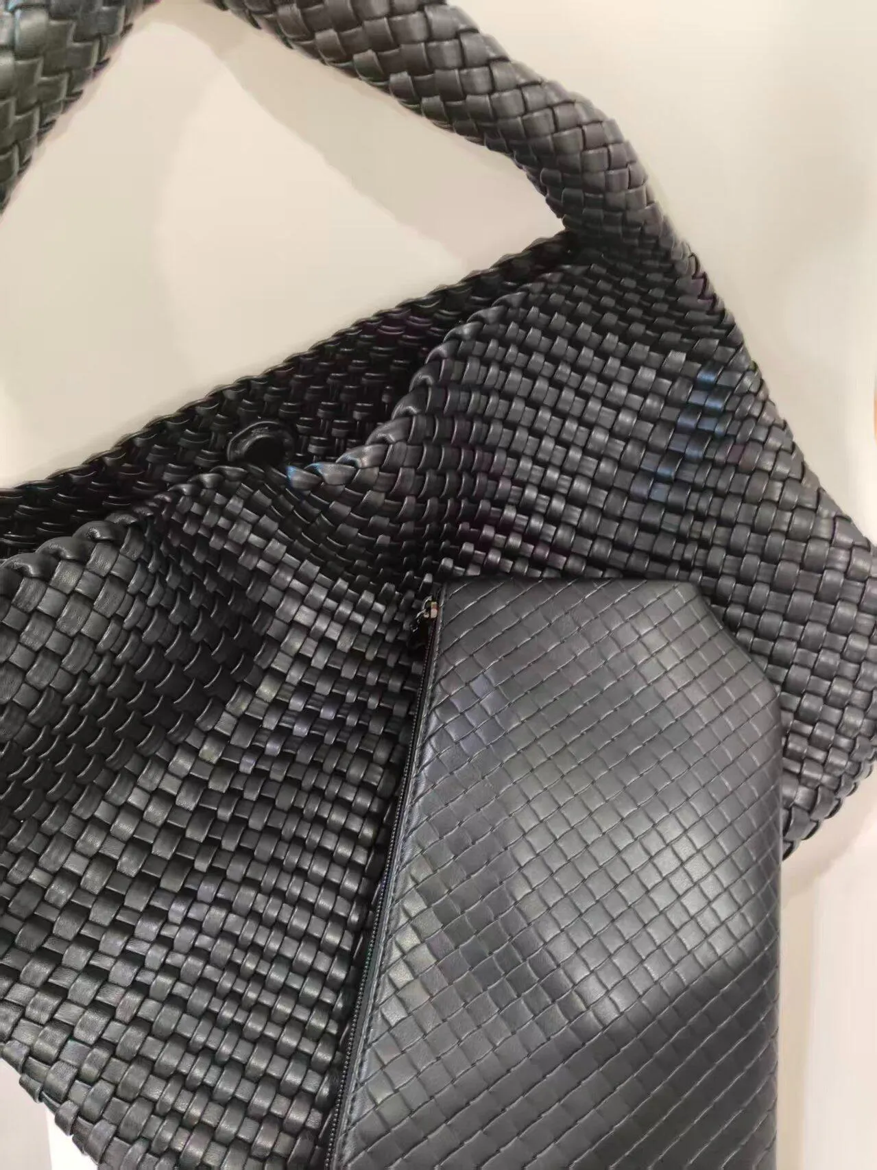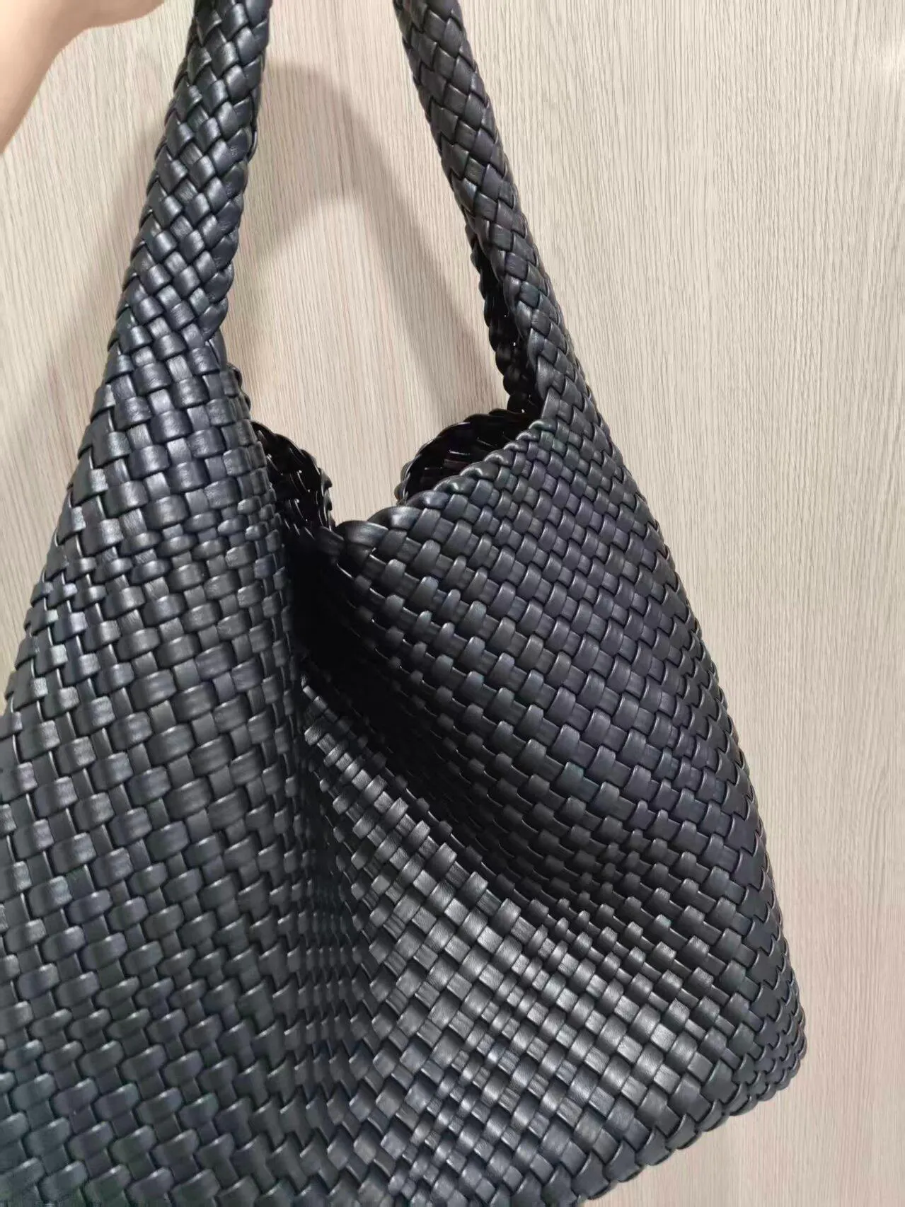 The Terra Weave is a harmony of timeless elegance and relaxed sophistication. Defined by its spacious silhouette and graceful slouchy form, this bag reimagines the classic woven tote with a touch of effortless charm. Crafted from supple vegan leather with intricate woven detailing, its surface reveals artisanal texture and tactile allure. The single top handle ensures comfort, while the fluid structure lends an air of understated refinement. This bag embodies balance—spacious yet graceful, natural yet modern.