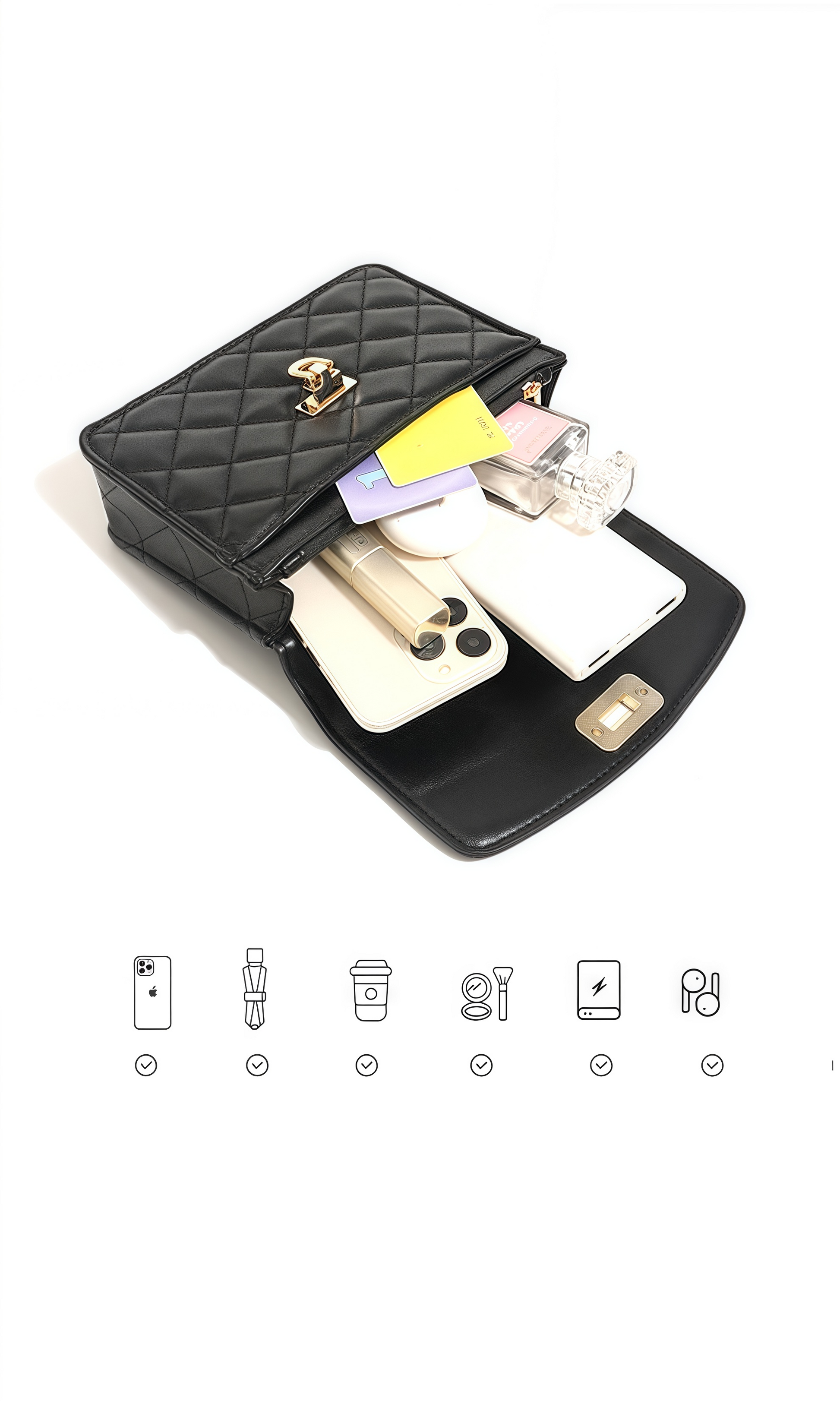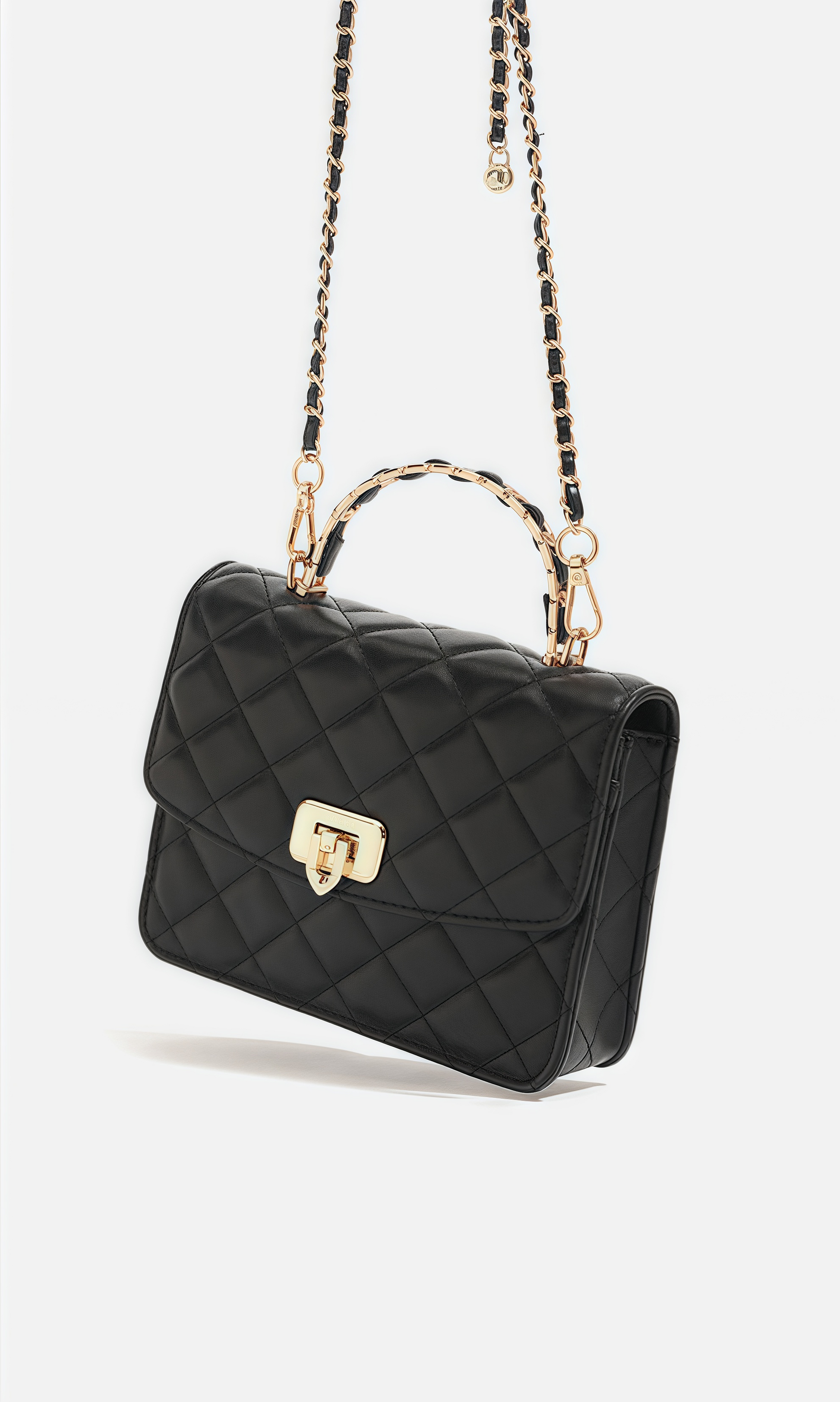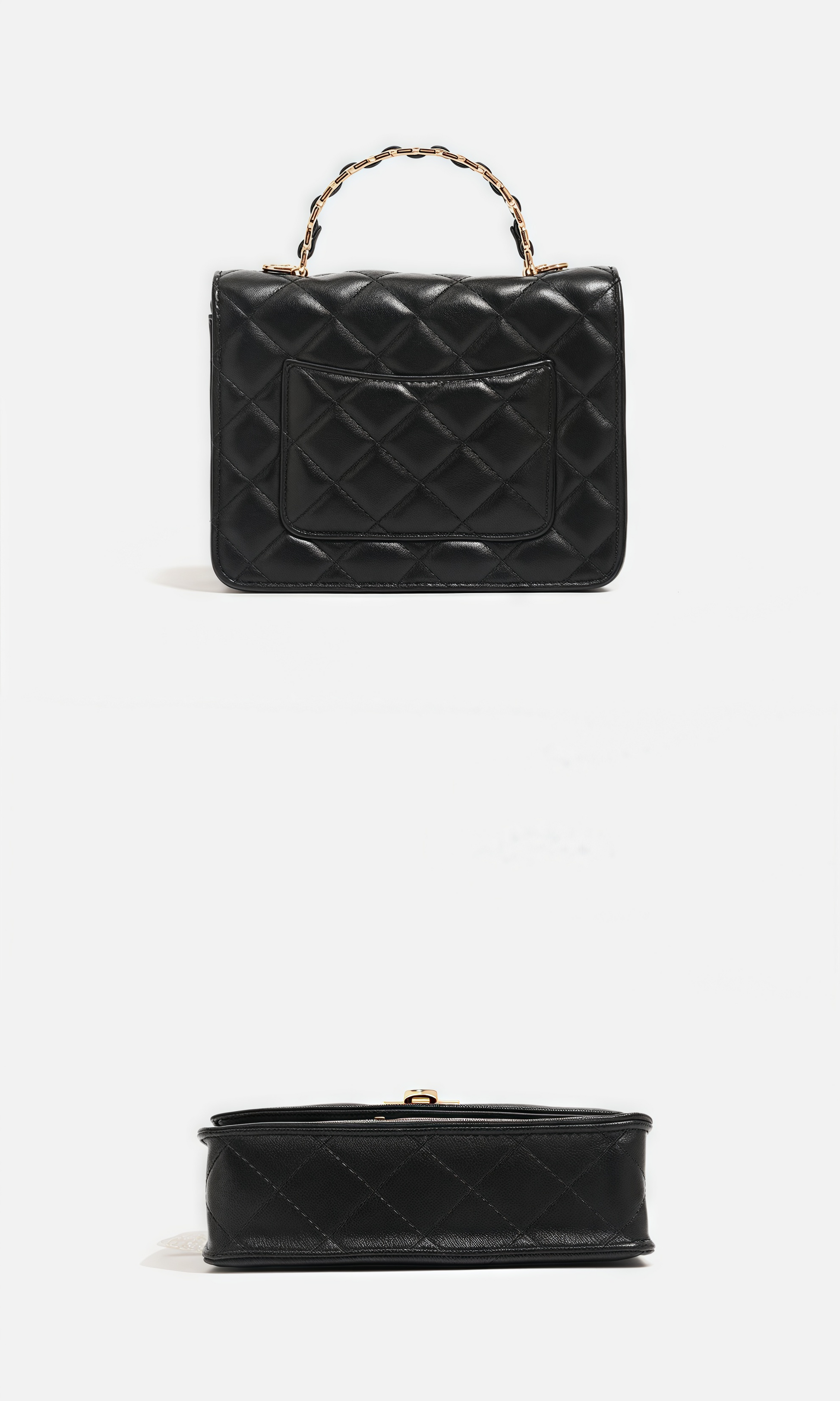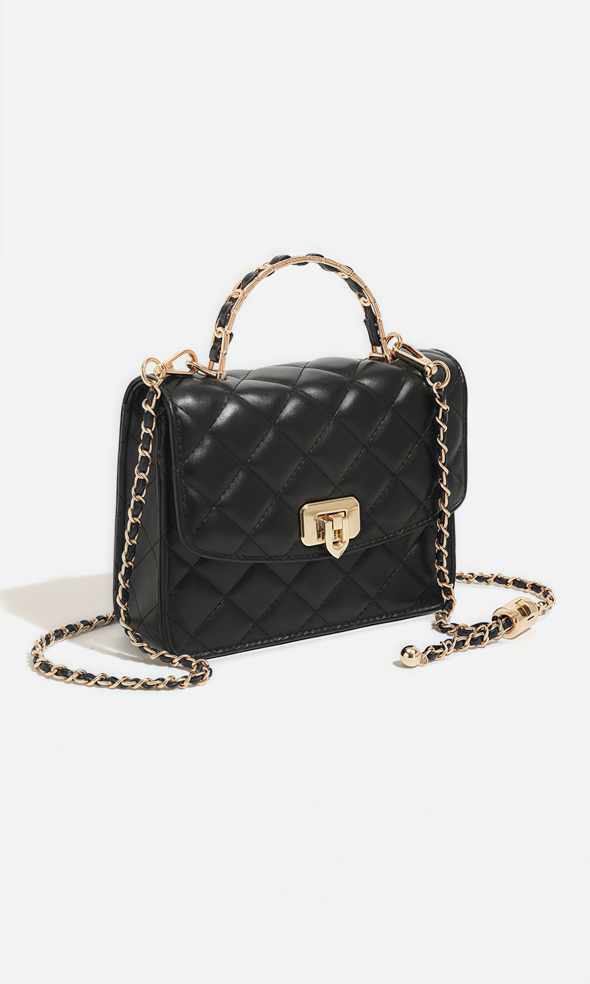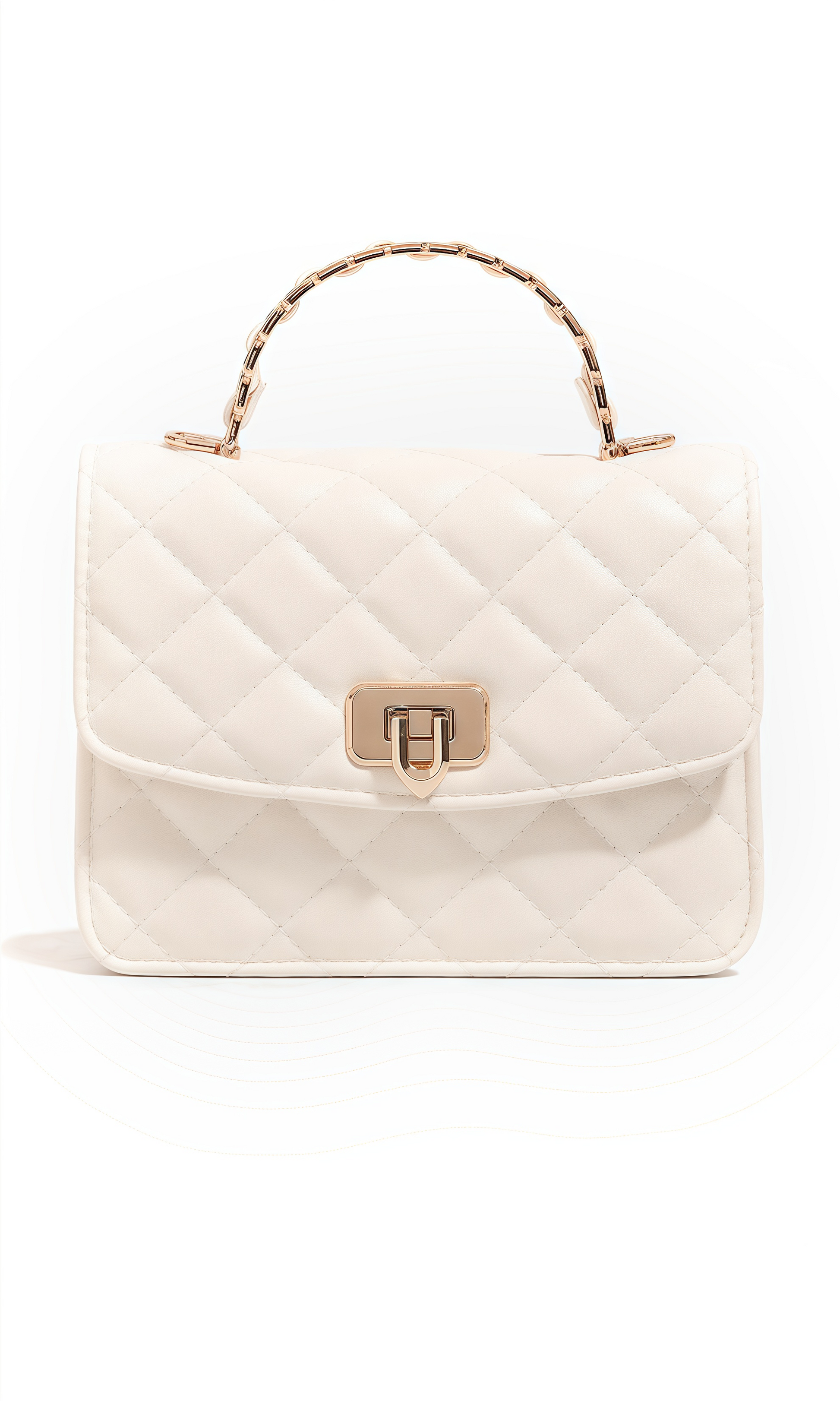 The Classic Quilte is a harmony of timeless elegance and refined structure. Defined by its compact box silhouette and graceful rectangular form, this bag reimagines the classic satchel with enduring sophistication. Crafted from smooth vegan leather with quilted detailing, its surface reveals a luxurious texture and tactile allure. The chain-woven top handle and polished turn-lock closure provide both charm and security, while the detachable strap ensures versatile styling. This bag embodies balance—structured yet delicate, classic yet modern.