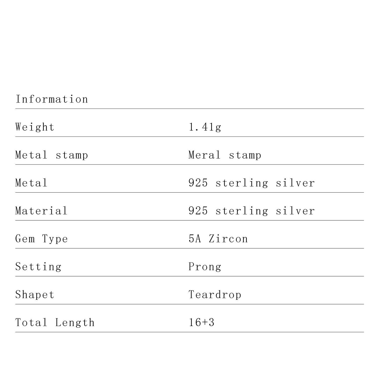 Metal: 925 Sterling Silver