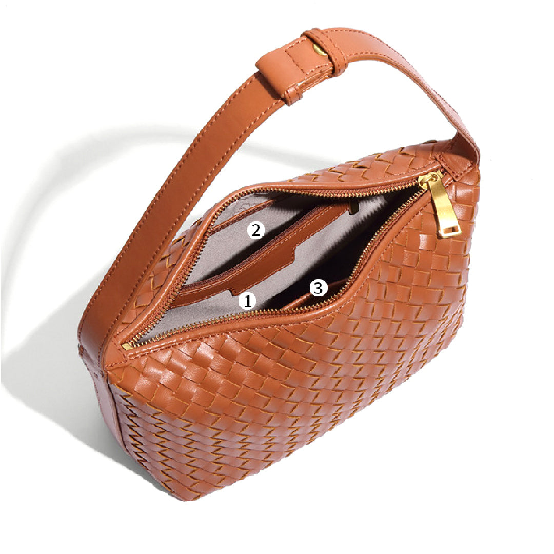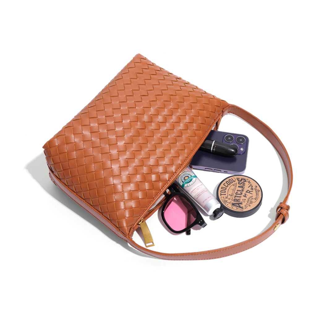 This woven crossbody bag offers ample space to accommodate daily essentials such as a smartphone, lipstick, sunglasses, and a compact mirror, making it a practical and stylish choice for everyday use.
