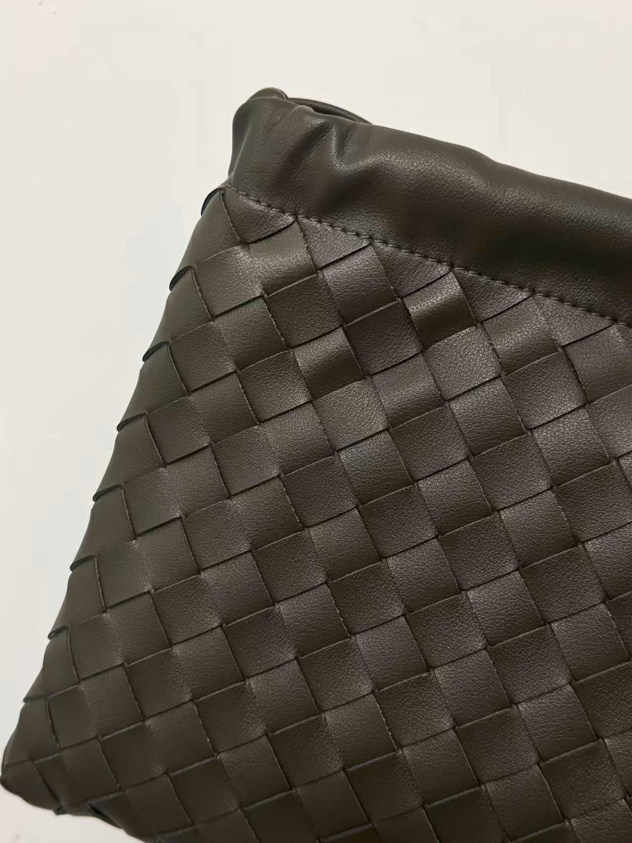 The Lucienne Noire Woven Clutch is a masterclass in quiet luxury and timeless craftsmanship. Handwoven in supple calfskin leather, its deep obsidian hue radiates subtle power and sophistication. Each interlaced strand forms a rhythmic structure reminiscent of urban nightscapes—refined, architectural, and infinitely modern.