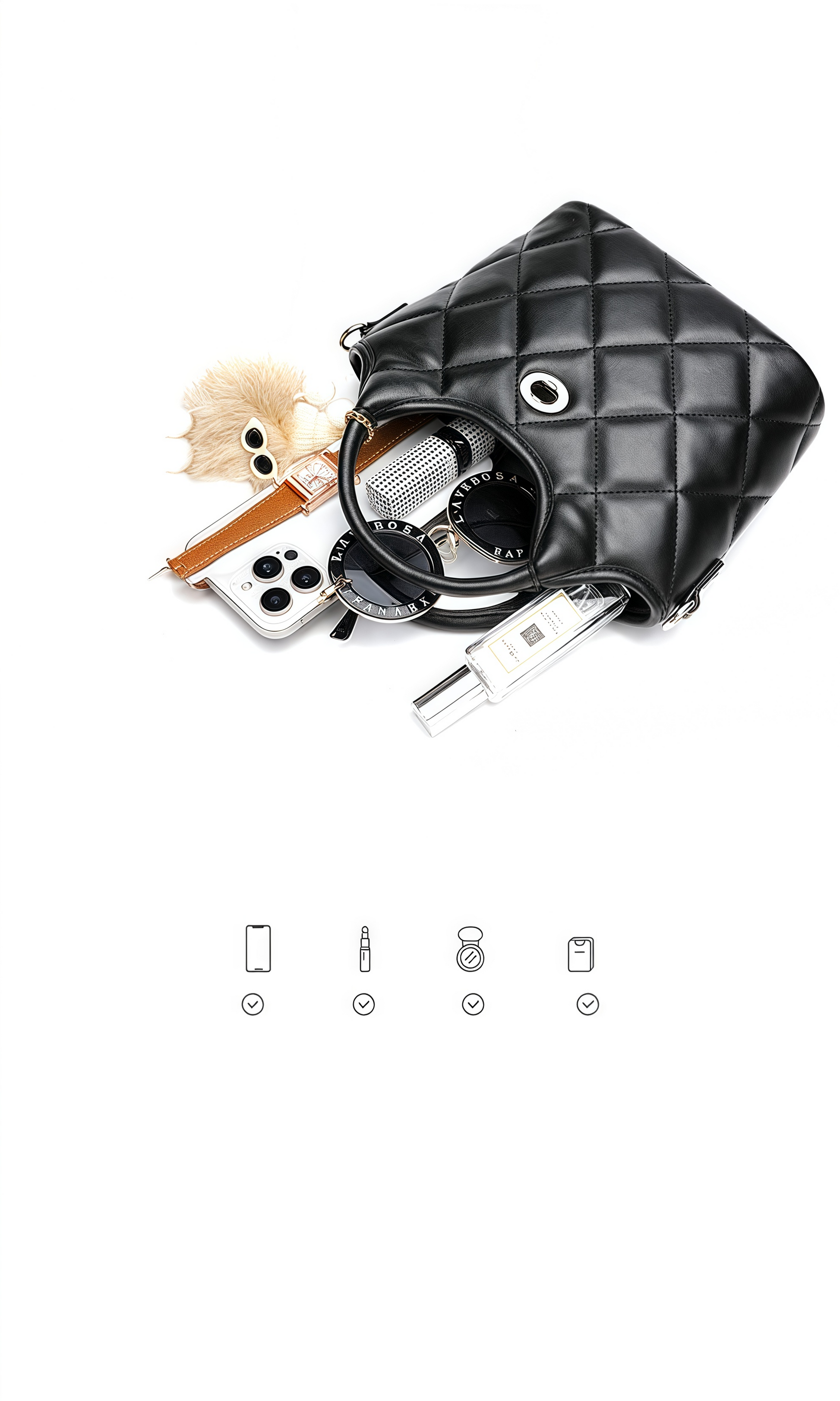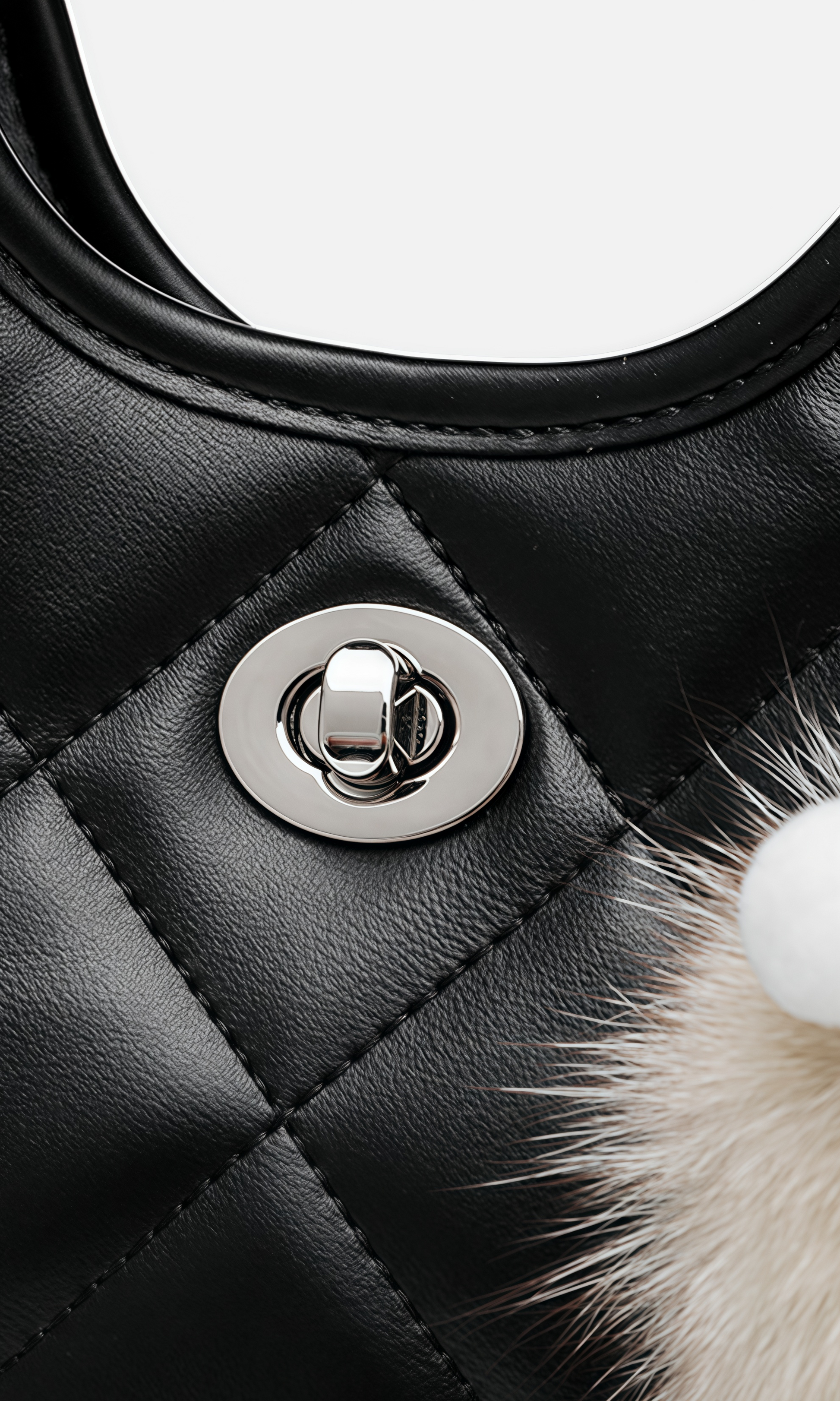 The Midnight Arc Tote is a refined expression of modern chic and timeless elegance. Defined by its rounded top opening and structured silhouette, this bag blends practicality with a touch of feminine sophistication. Crafted from smooth vegan leather with quilted detailing, its surface reveals a luxurious texture and visual depth. The detachable crossbody strap ensures versatile styling, while the polished hardware adds a note of understated refinement. Compact yet spacious, it is designed to harmonize elegance with everyday function—delicate yet enduring, timeless yet contemporary.