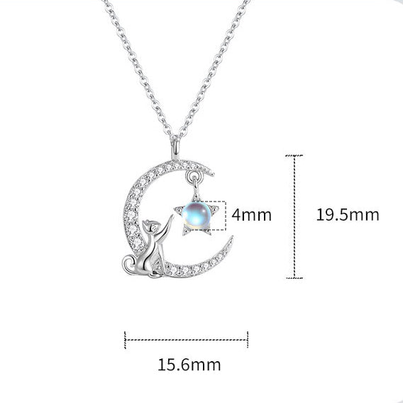 Enchant with the "Moonlit Fairy Necklace," featuring a delicate fairy silhouette reaching for a luminous moonstone star. This sterling silver pendant, adorned with sparkling crystals, captures the magic of a starry night. A whimsical, elegant accessory for dreamers and believers.