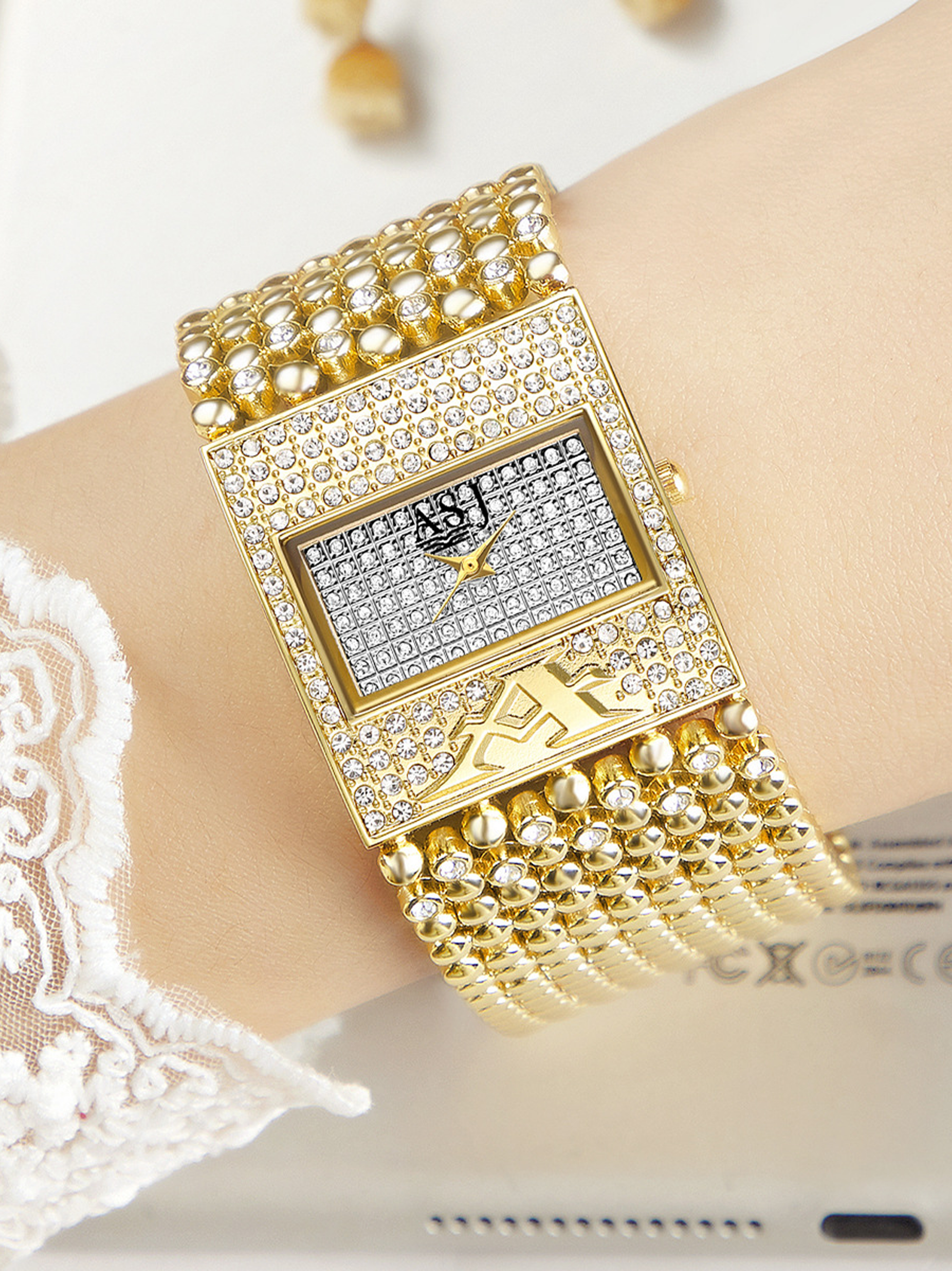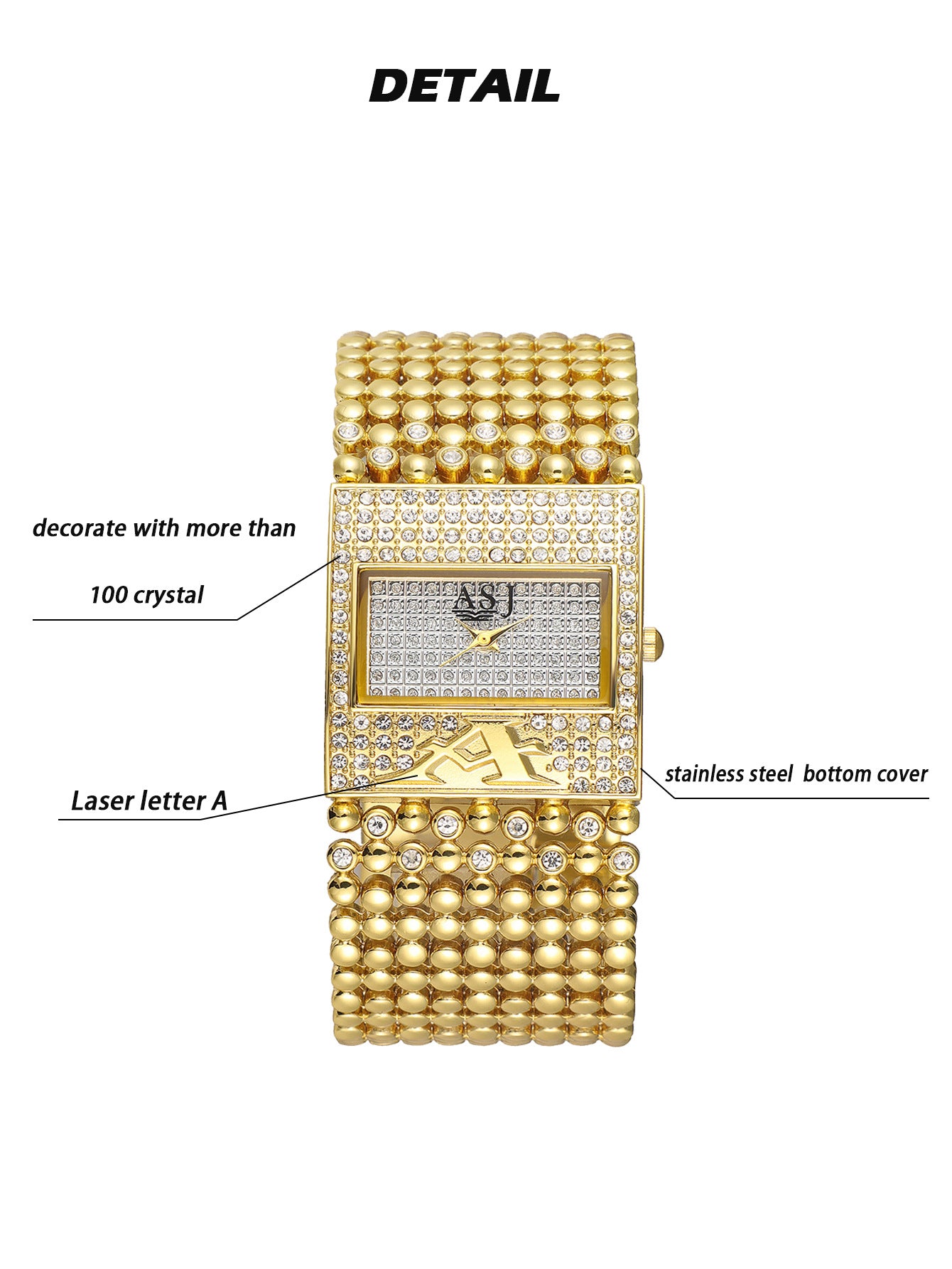 Crafted for women who command attention with quiet power and unmistakable elegance, the Regalia Luxe Timepiece is a bold fusion of jewelry-level artistry and precision timekeeping. Its wide, gold-toned bracelet—adorned with polished alloy beads and shimmering crystals—makes this watch not just an accessory, but a statement of prestige.