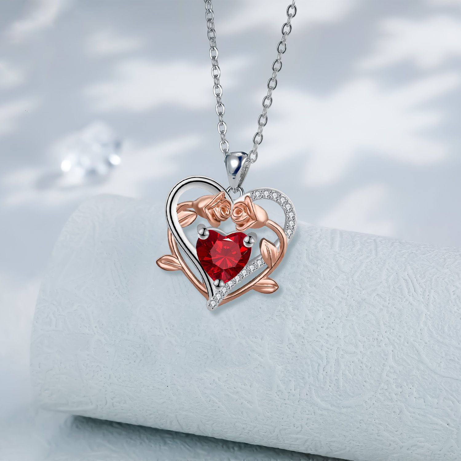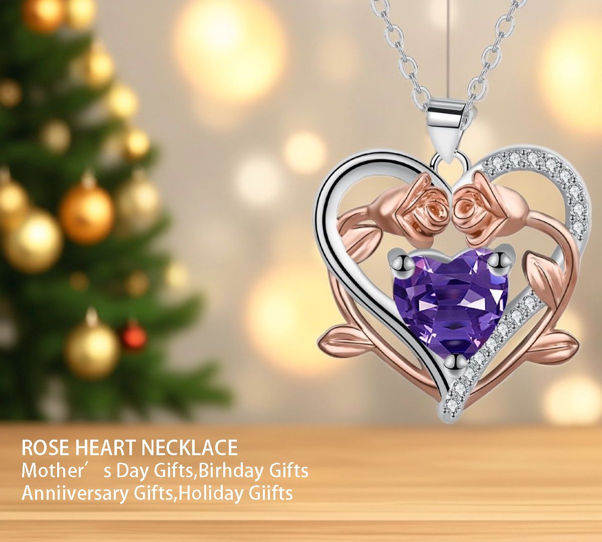 The Rose Heart Necklace showcases a captivating two-tone design with a central heart-shaped gemstone, symbolizing enduring affection. Adorned with sparkling accents, this piece is a romantic gift for cherished moments.