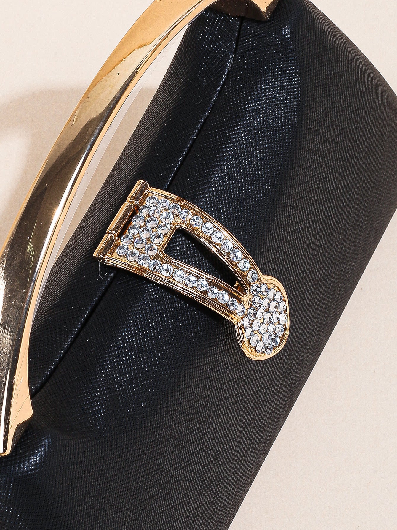 High-quality vegan leather with a crystal-embellished hardware clasp.