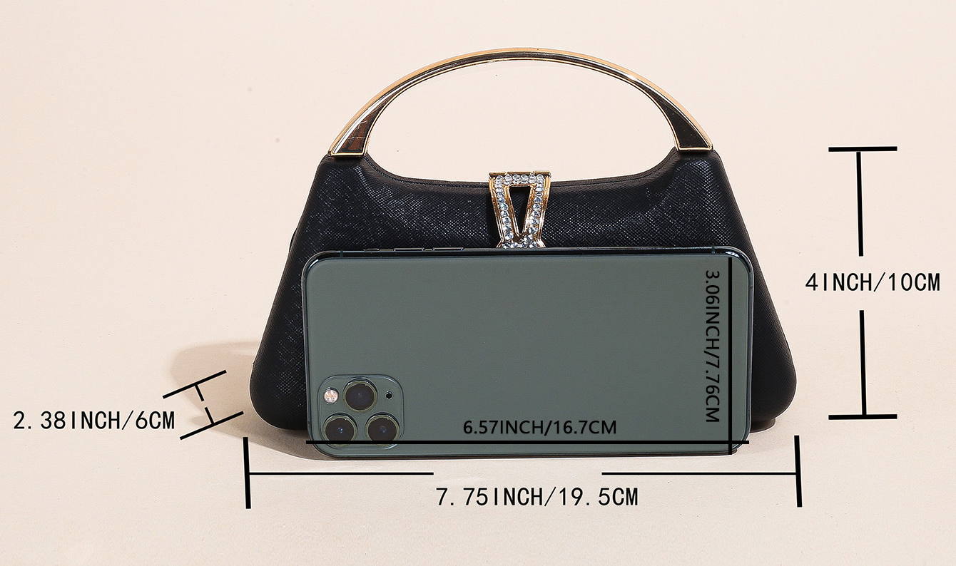 Crafted for women who embrace sophistication in every detail, the Seraphine Royale Mini Clutch is a statement piece defined by its sculpted silhouette and radiant jewel-accented clasp. The polished top handle adds a touch of regal refinement, transforming the clutch into a handheld treasure that elevates any ensemble.