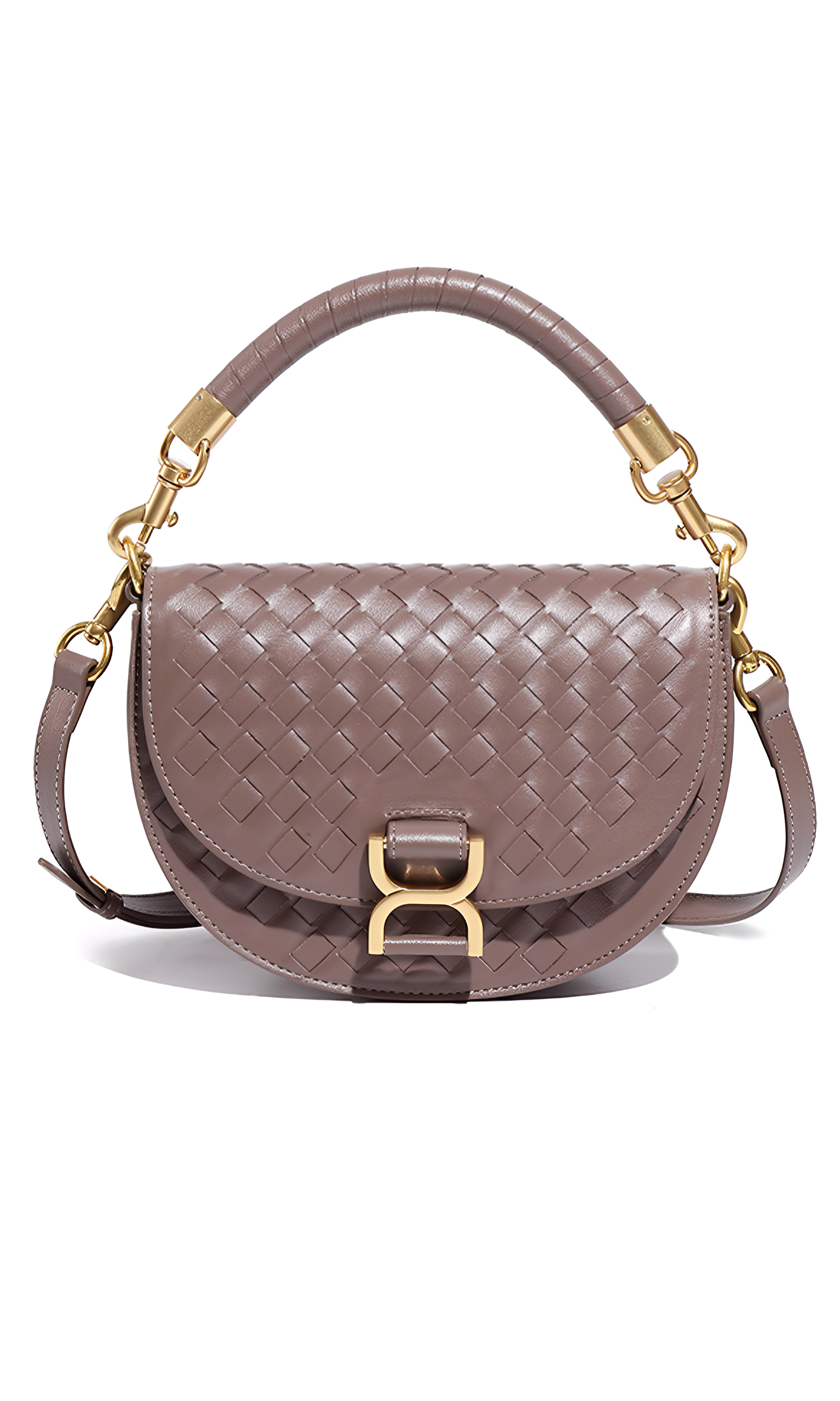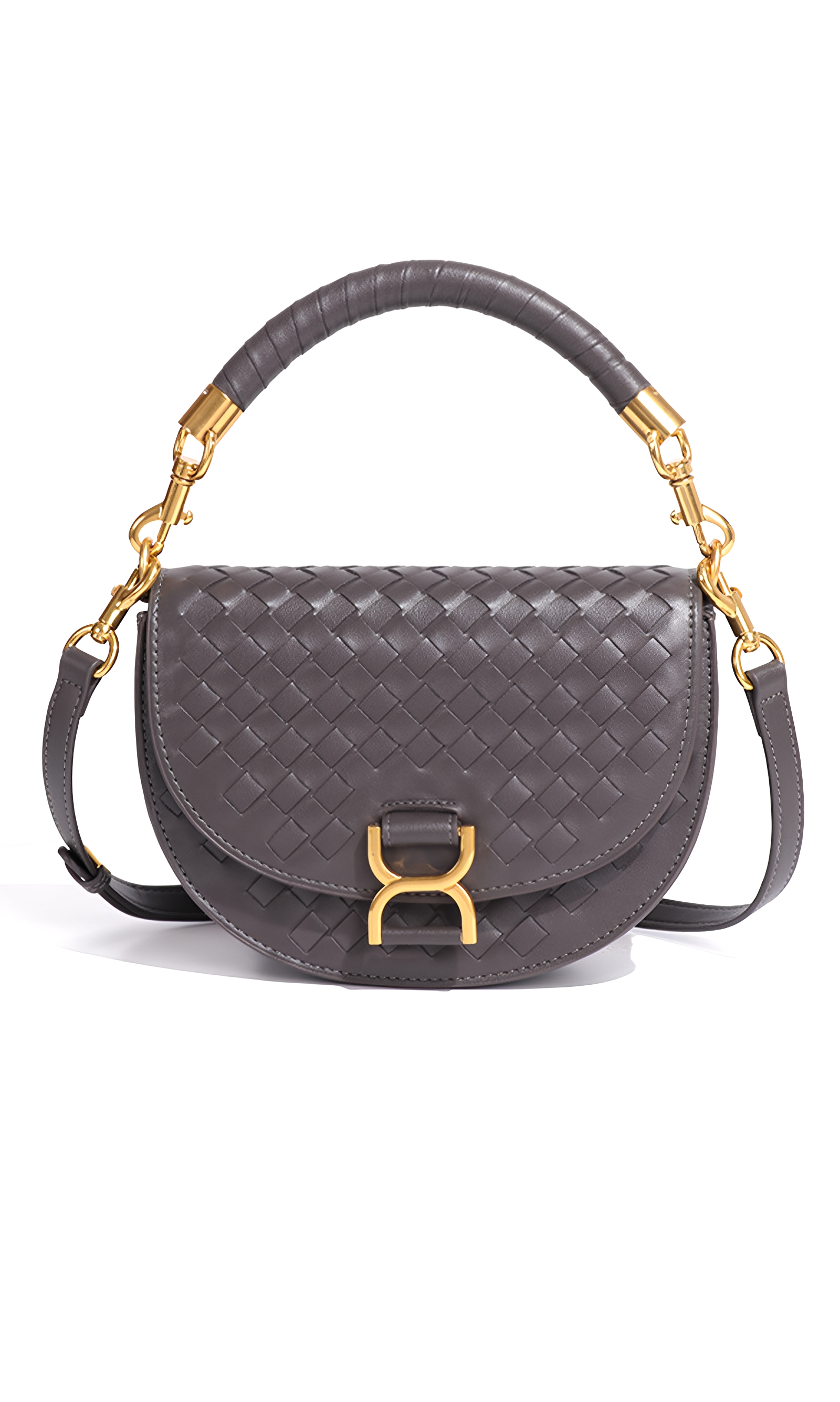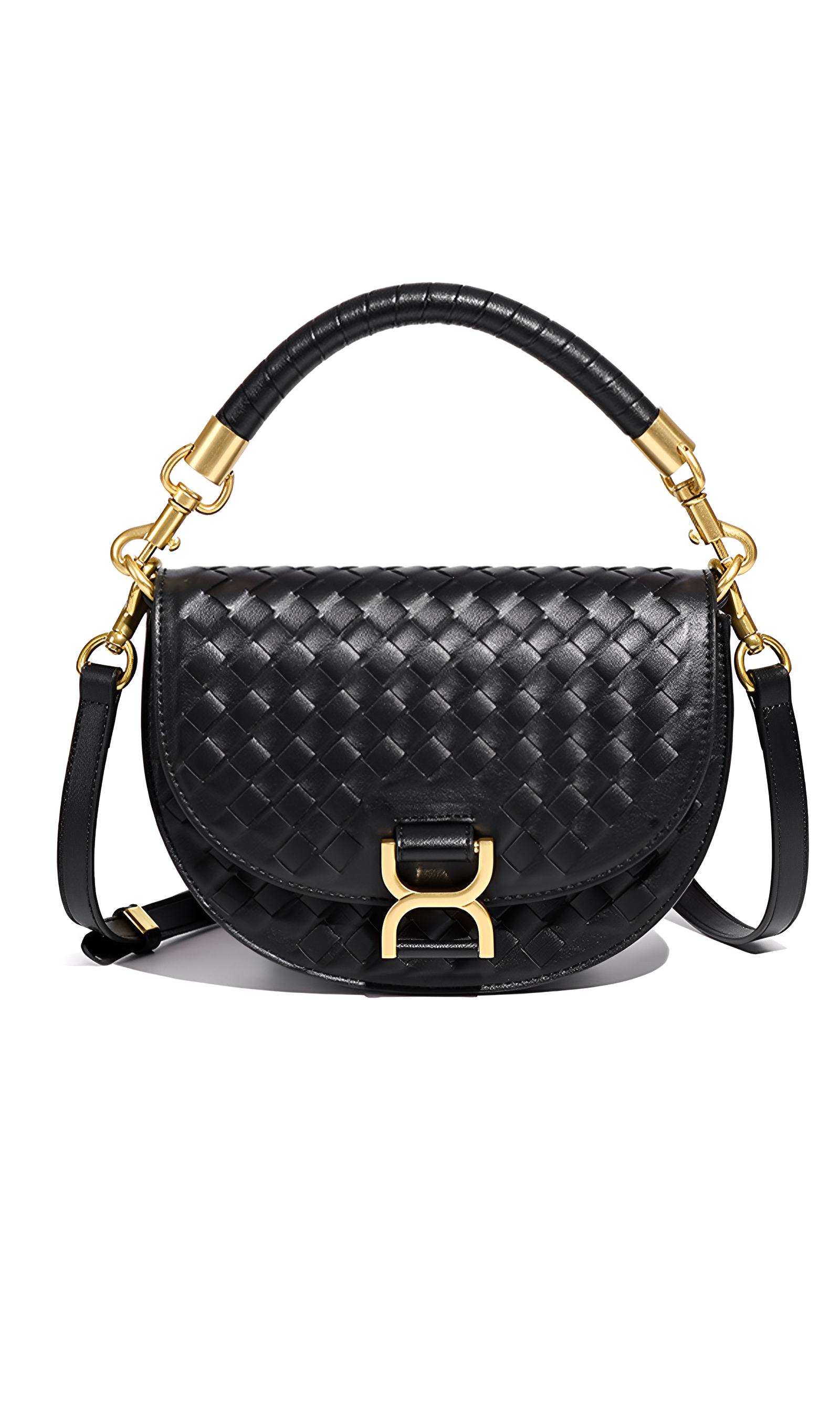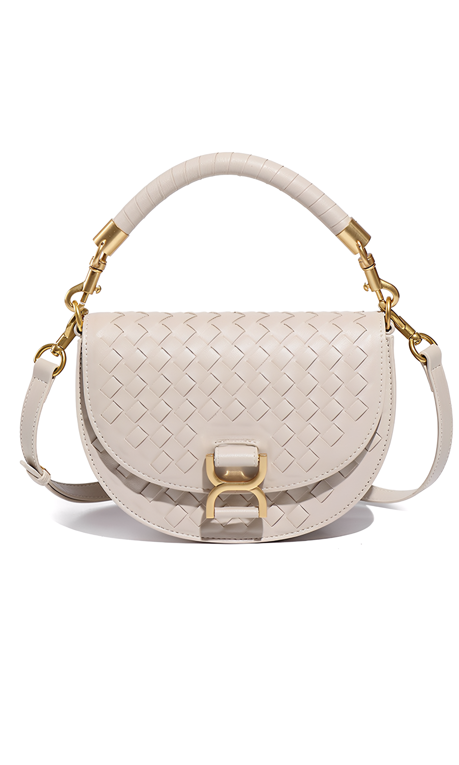The Terra Weave is a harmony of timeless craftsmanship and modern refinement. Defined by its compact silhouette and curved flap form, this bag reimagines the classic top-handle style with a touch of artisanal sophistication. Crafted from intricately woven vegan leather, its surface reveals a luxurious texture and tactile allure, while the polished hardware provides a subtle gleam of elegance. The structured handle and detachable strap ensure versatile styling, lending both grace and practicality. This bag embodies balance—delicate yet enduring, traditional yet contemporary.