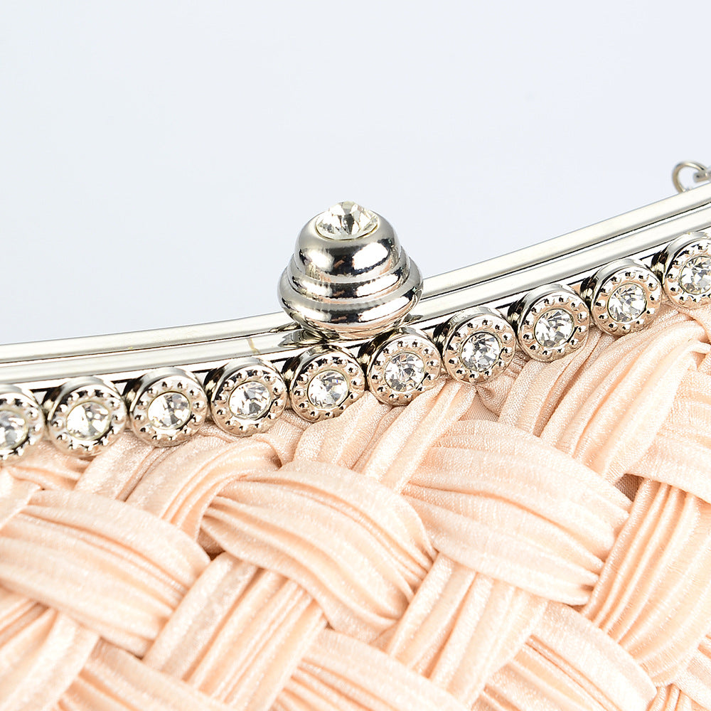 Radiate timeless charm with the Celestia Braided Clutch, a stunning accessory designed for women who appreciate refined luxury. Crafted from high-quality PU and adorned with an elegant braided texture, this clutch captures sophistication with every detail. The metallic clasp, embellished with delicate rhinestones, adds a graceful sparkle—perfect for complementing both traditional and modern evening ensembles.