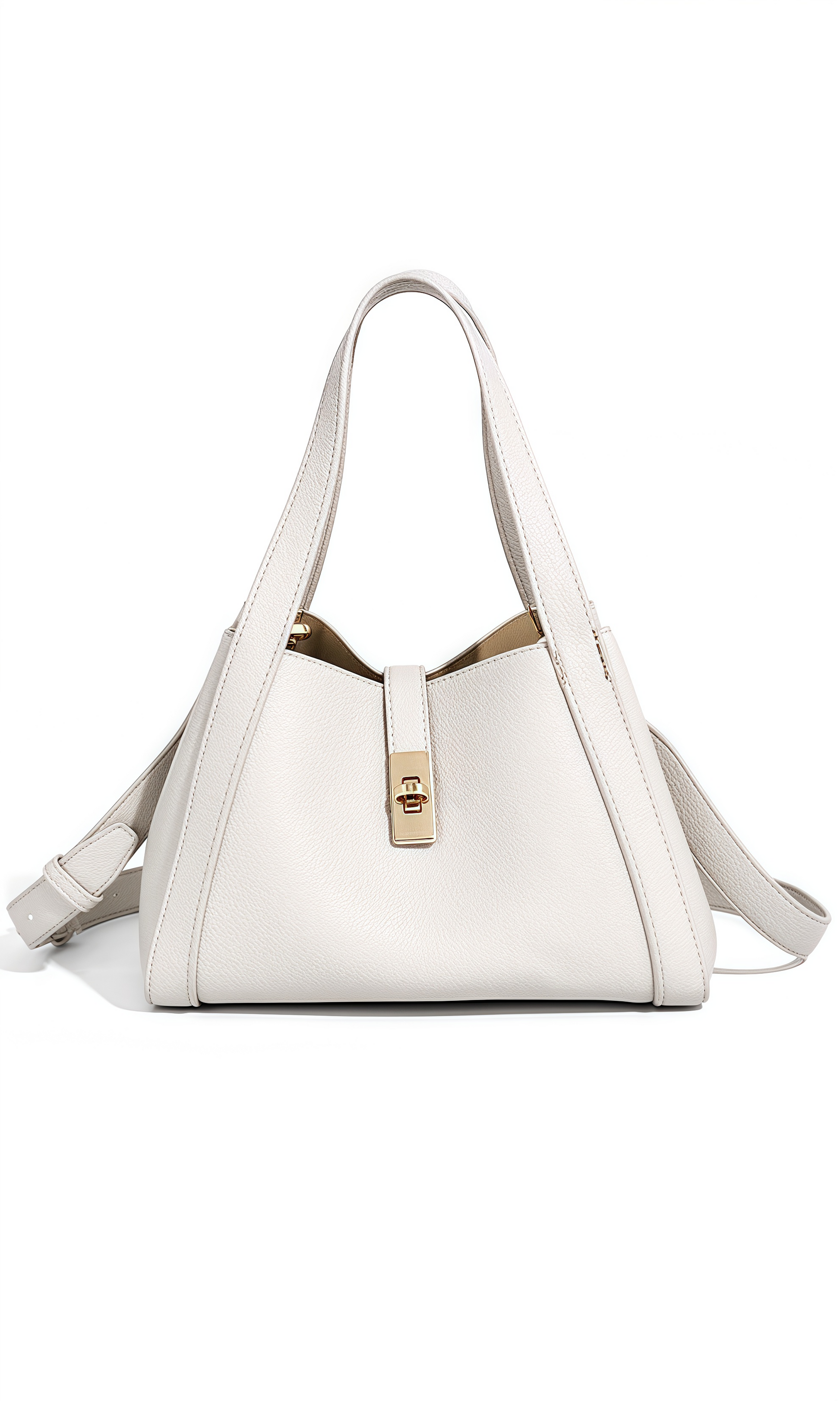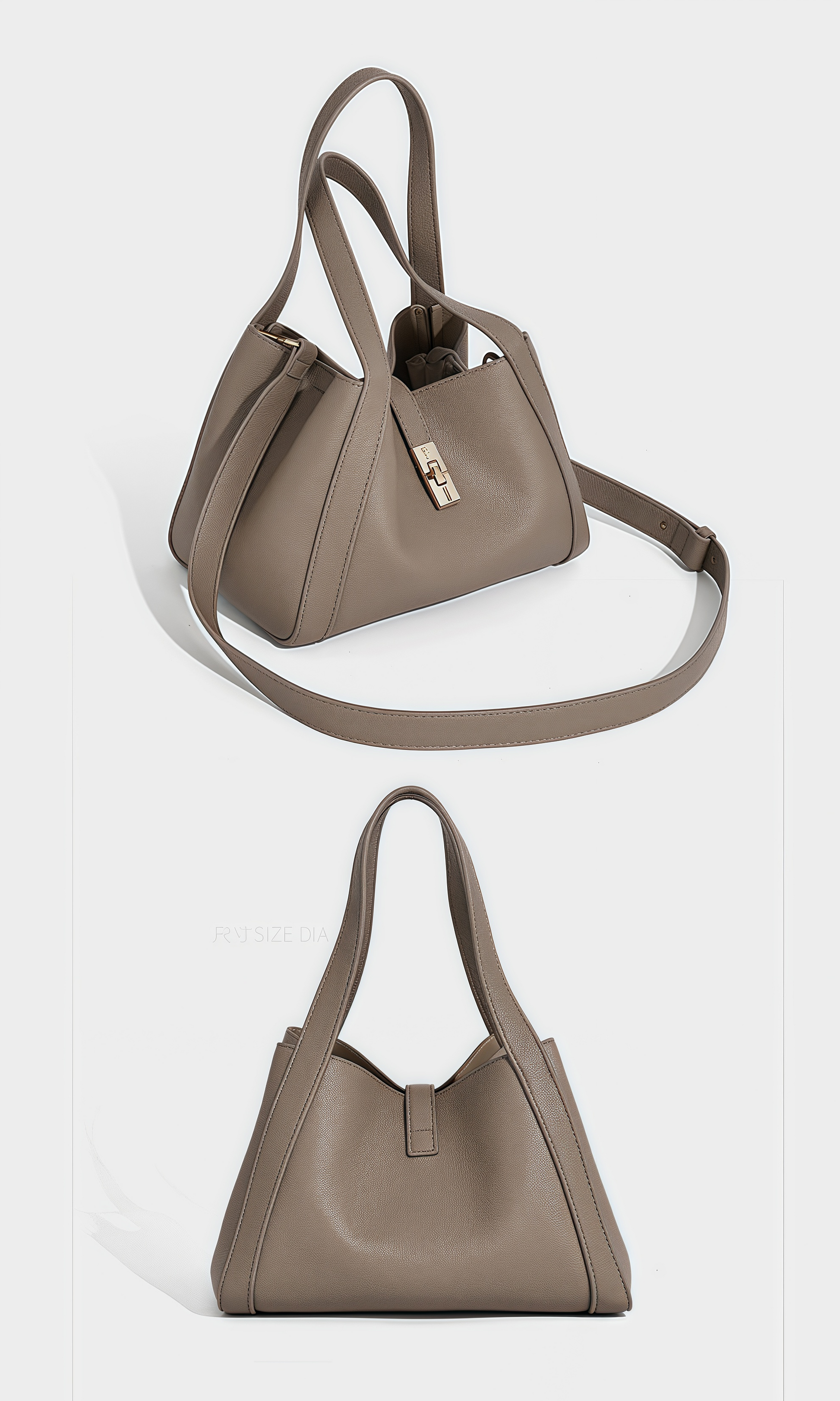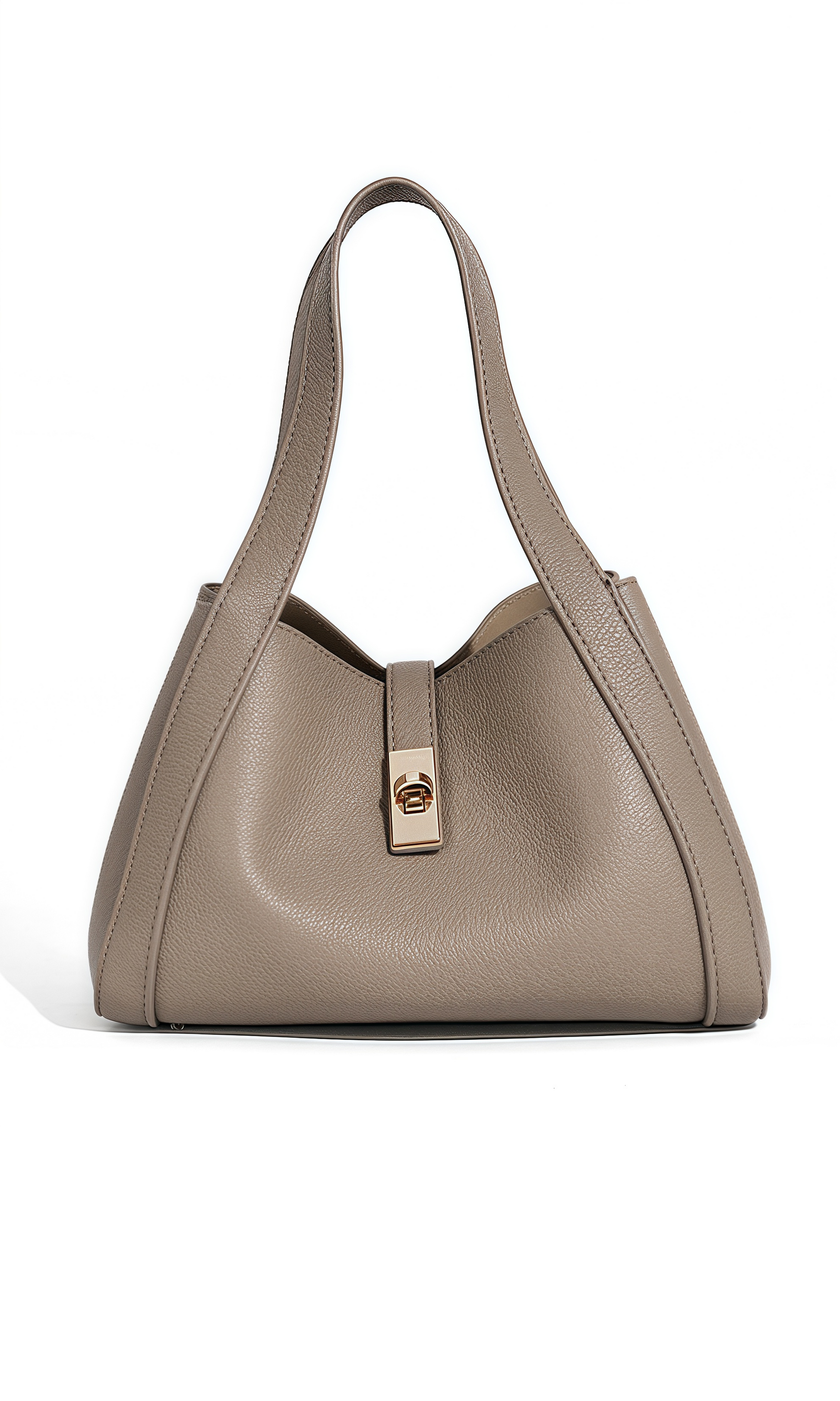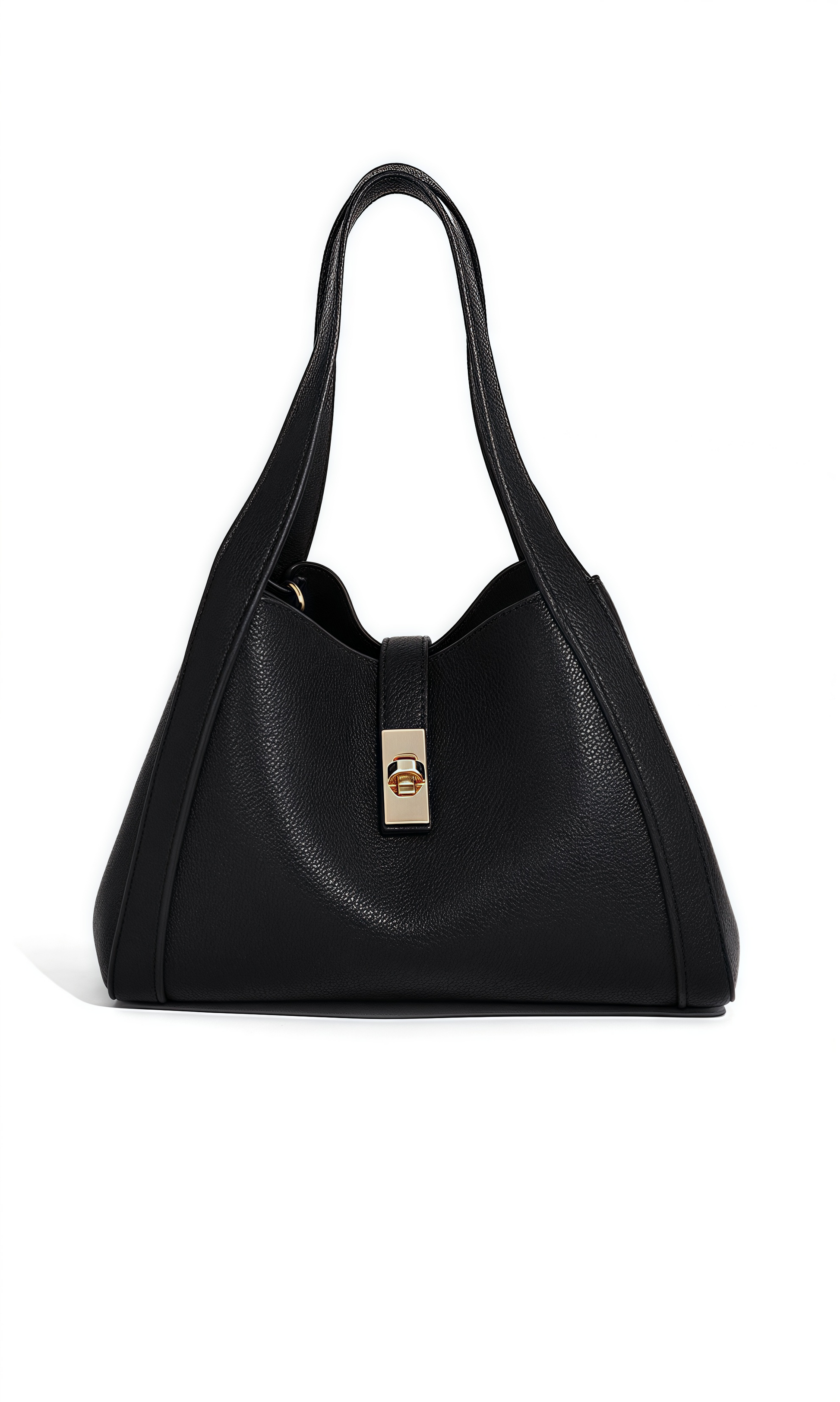 The Urban Poise Bag is a refined expression of contemporary elegance and effortless sophistication. Defined by its soft trapezoidal silhouette and fluid structure, this bag reimagines the classic tote with modern minimalism. Crafted from supple vegan leather with a natural grain finish, its surface reveals a tactile allure and understated luxury. The polished turn-lock closure provides a secure accent, while the wide handles and adjustable strap ensure versatile styling. This bag embodies harmony—sleek yet spacious, timeless yet modern.